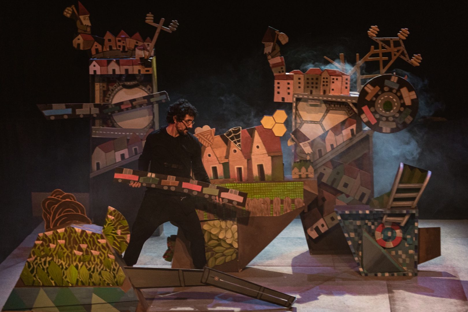 Grills, aranyes, abelles, ocells i formigues. La vida s’escampa per tots elsracons. A la riba d’un riu, les bestioles comparteixen un tros de terra.Cadascuna amb el seu niu, el seu cau. De vegades com veïnes benavingudes, d’altres no tant. Un dia hi arriba una nova espècie, la humana.Una pagesa també hi fa el seu niu: una barraqueta de canya i fang. Amb elpas dels anys, aquell niu humà anirà creixent. Com s’ho faran les bestiolesper continuar vivint en aquell indret? Un espectacle sobre la coexistència dediverses espècies animals, i sobre les conseqüències que hi té l’empremtahumana