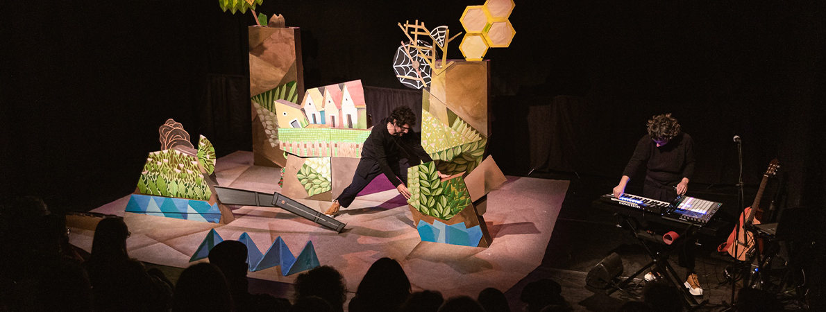 Grills, aranyes, abelles, ocells i formigues. La vida s’escampa per tots elsracons. A la riba d’un riu, les bestioles comparteixen un tros de terra.Cadascuna amb el seu niu, el seu cau. De vegades com veïnes benavingudes, d’altres no tant. Un dia hi arriba una nova espècie, la humana.Una pagesa també hi fa el seu niu: una barraqueta de canya i fang. Amb elpas dels anys, aquell niu humà anirà creixent. Com s’ho faran les bestiolesper continuar vivint en aquell indret? Un espectacle sobre la coexistència dediverses espècies animals, i sobre les conseqüències que hi té l’empremtahumana